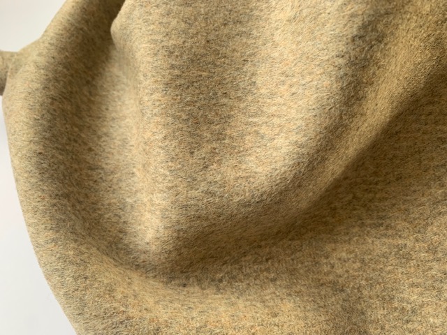 Developed with custom melange colours, the double face cashmere was slightly brushed lending itself to the relaxed, cocoon fit of styles this was developed in. 80% Wool, 20% Cashmere.